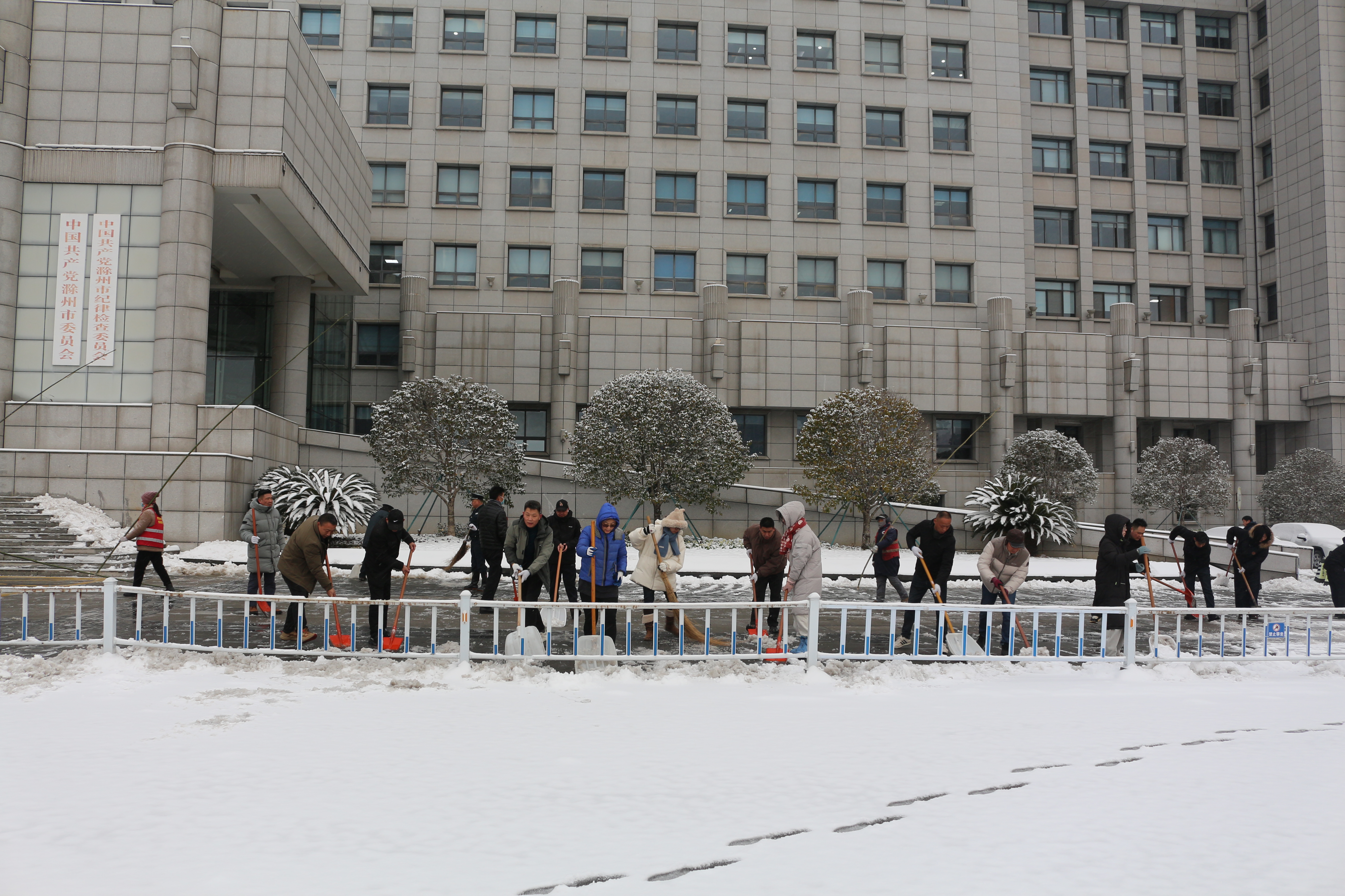 1月19日晚,我市普降雨雪,滁州市机关事务管理处第一时间启动应急预案,组织发动全处党员干部职工和保障区域物业人员,调动各类保障物资,为全面开展扫雪除冰行动做好充足准备。